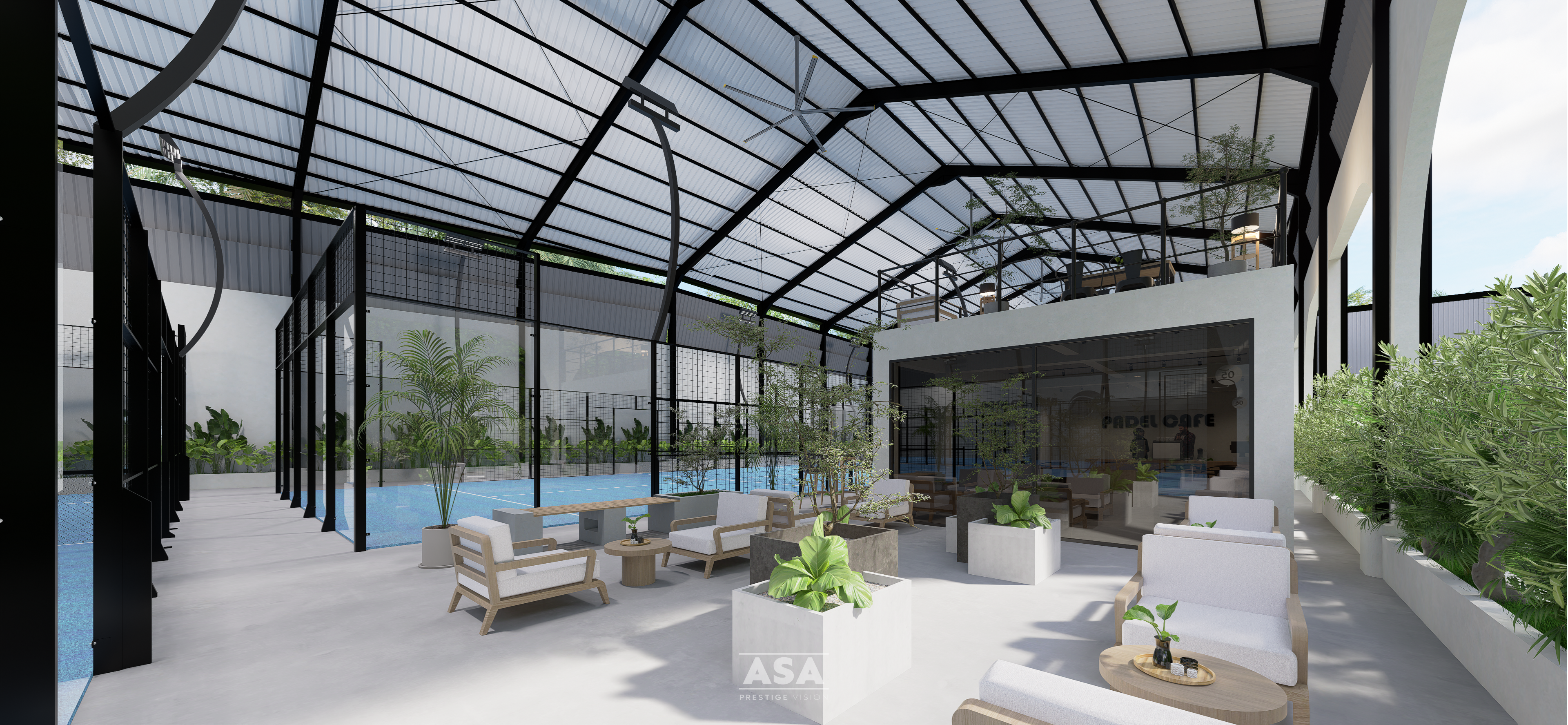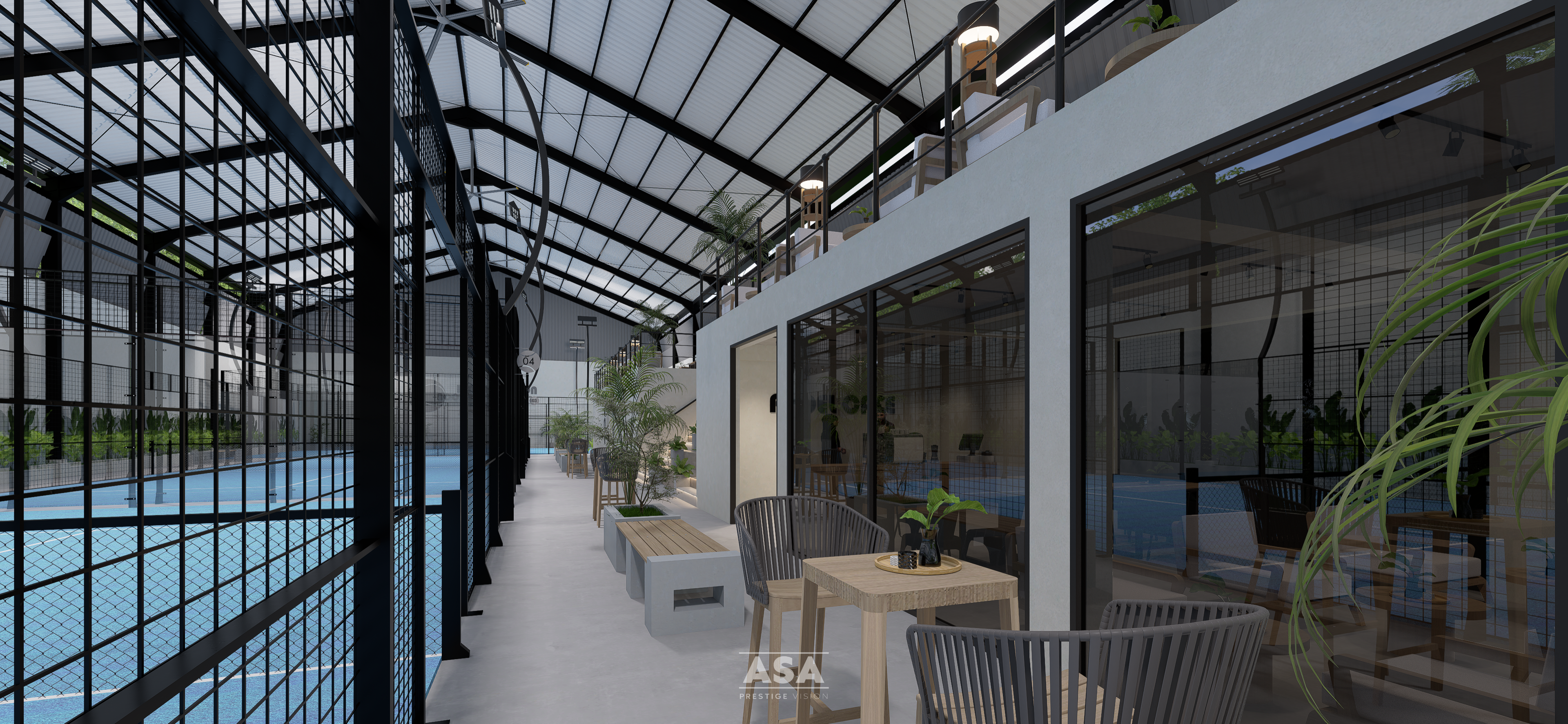 premium sport at Bintaro’s premier padel destination. Designed with a sleek, industrial aesthetic, this facility offers an unparalleled playing environment where high-performance courts meet architectural elegance. Whether you are a seasoned pro or a curious newcomer, you’ll find our vibrant blue courts with high-ceiling interiors provide the ultimate stage for every match, rain or shine.