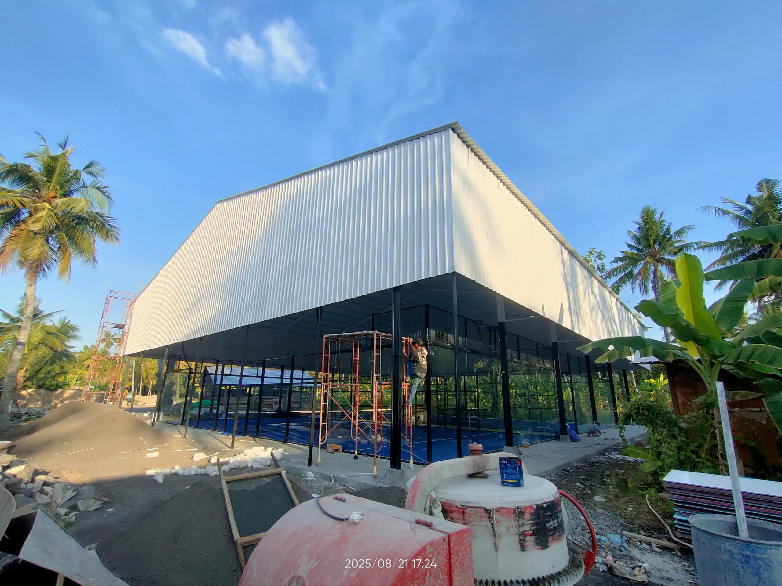 Witnessing exciting progress at the future home of Gymspaces and Padel Court Mangrove Bay! Our vision for a premier fitness and racquet sports destination is steadily taking shape. From the initial foundation work, as seen in the concrete slabs and reinforcement structures, to the impressive installation of the main roof structure, the site is transforming rapidly. The sturdy steel framework and expansive roofing indicate the advanced stage of construction for what will soon be a state-of-the-art covered padel court facility. Surrounded by the natural beauty of the area, this development promises to offer an exceptional environment for both serious athletes and casual players, bringing world-class sports amenities to the Mangrove Bay community. Stay tuned for more updates as we move closer to completion!
