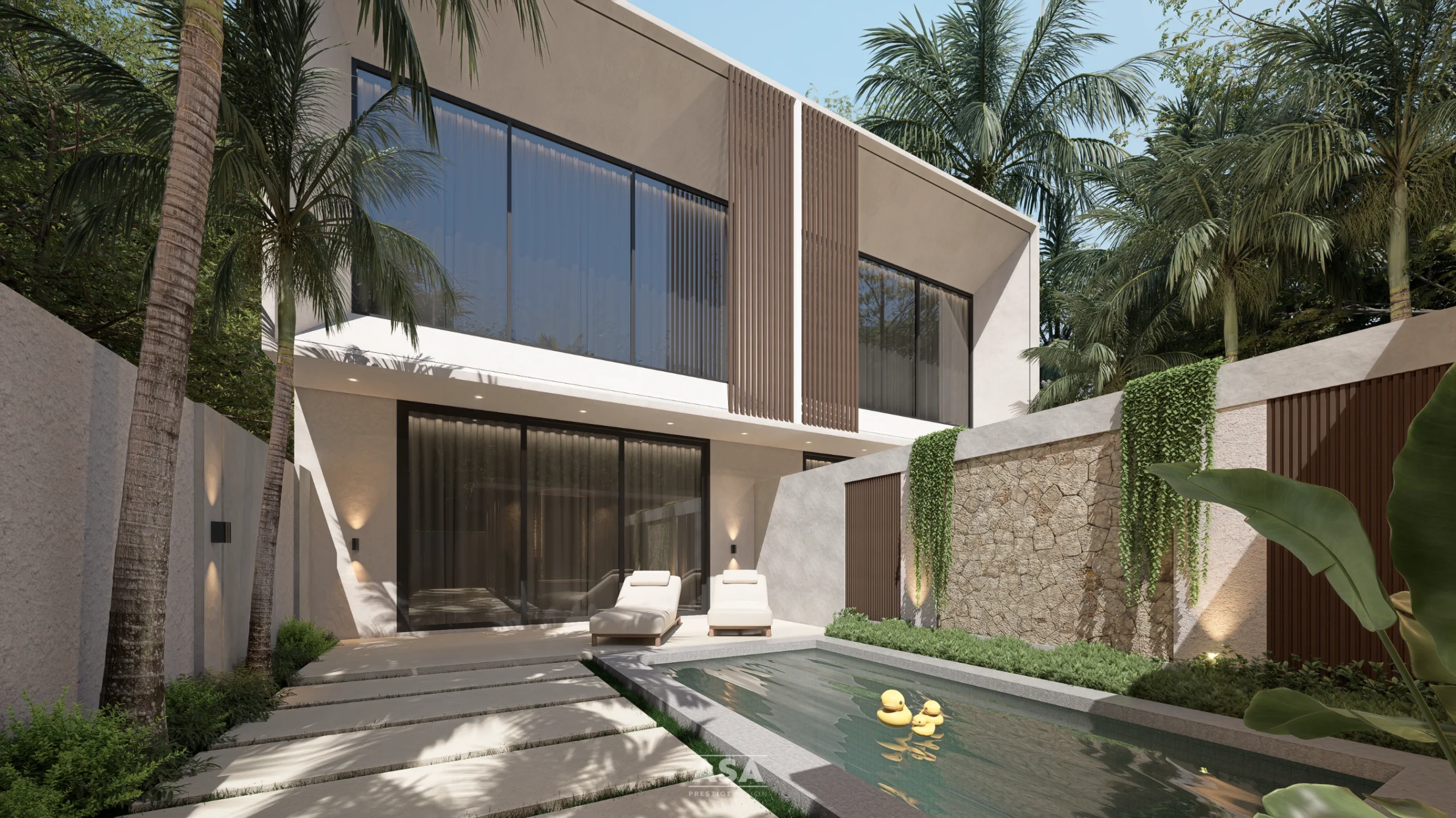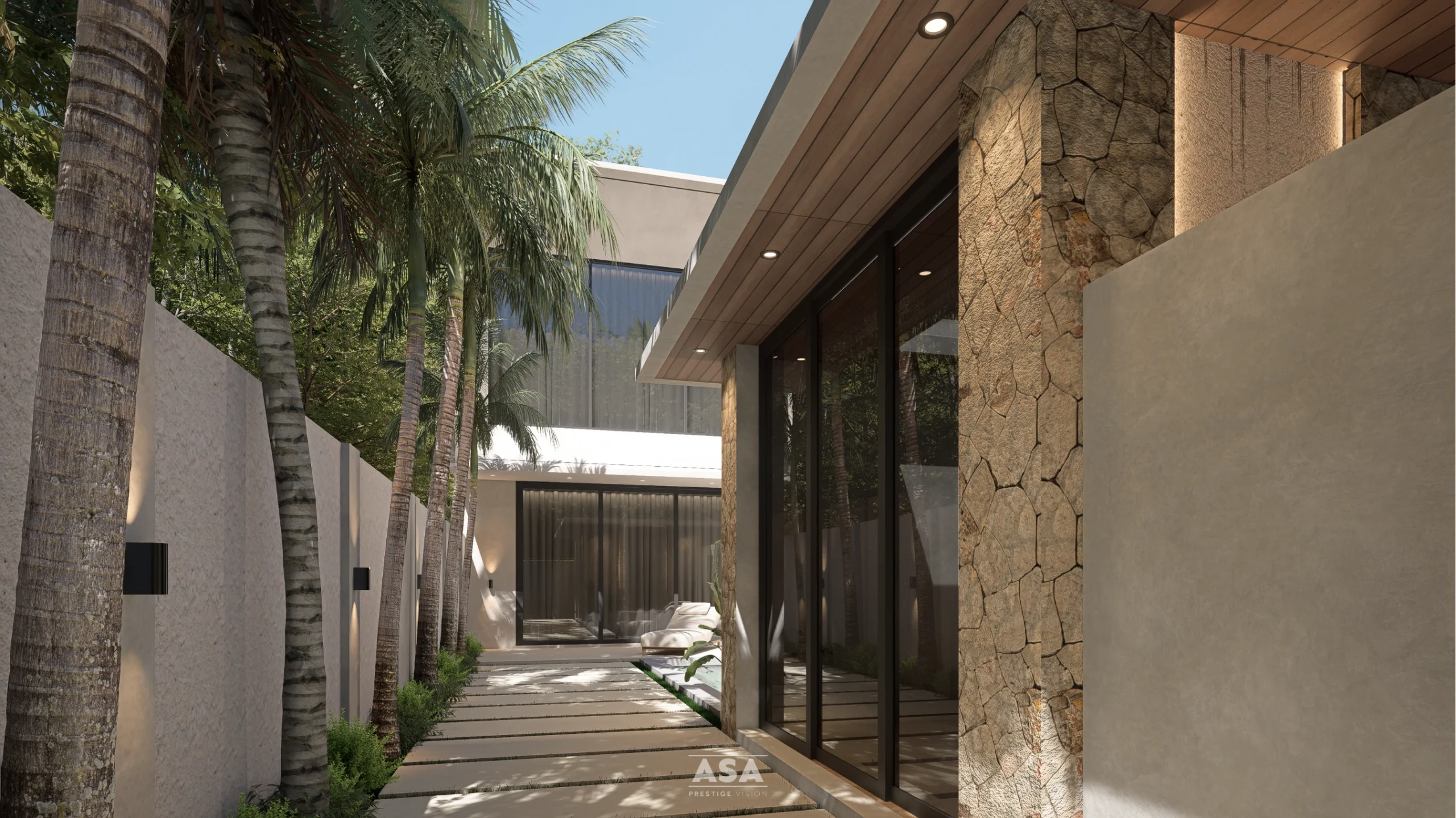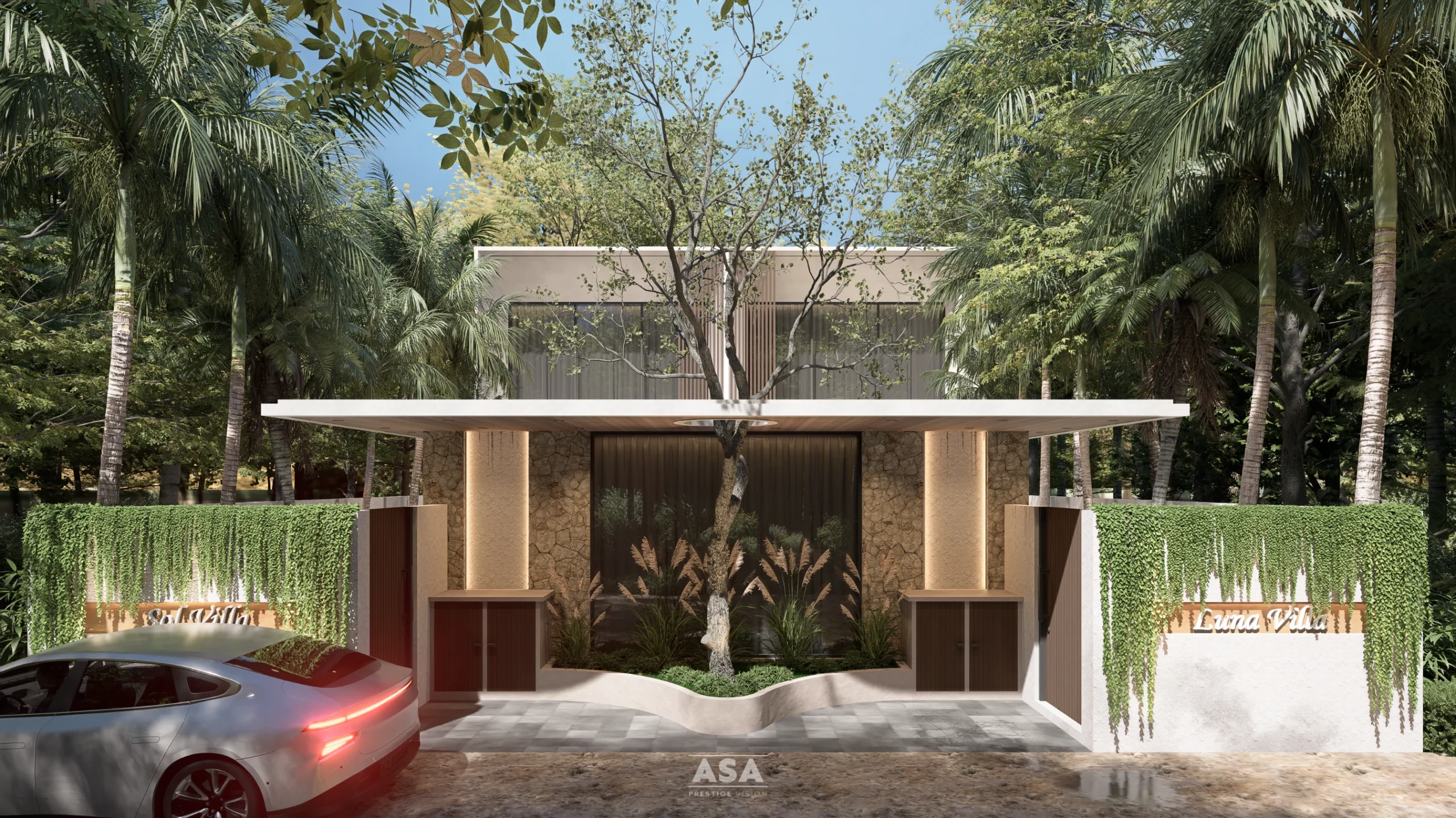 Lumara Villa is a breathtaking study in symmetrical elegance, where tropical modernism meets the serene beauty of a mirrored architectural concept. Comprising two twin sanctuaries, Villa Sol and Villa Luna, the estate is defined by its striking stone-clad facades, bold horizontal lines, and a seamless integration of lush greenery that blurs the boundary between nature and structure. Every detail, from the dramatic cantilevered roof to the central signature tree, has been meticulously crafted to create a harmonious balance of light, space, and privacy, offering an unparalleled visual experience that redefines contemporary luxury living.