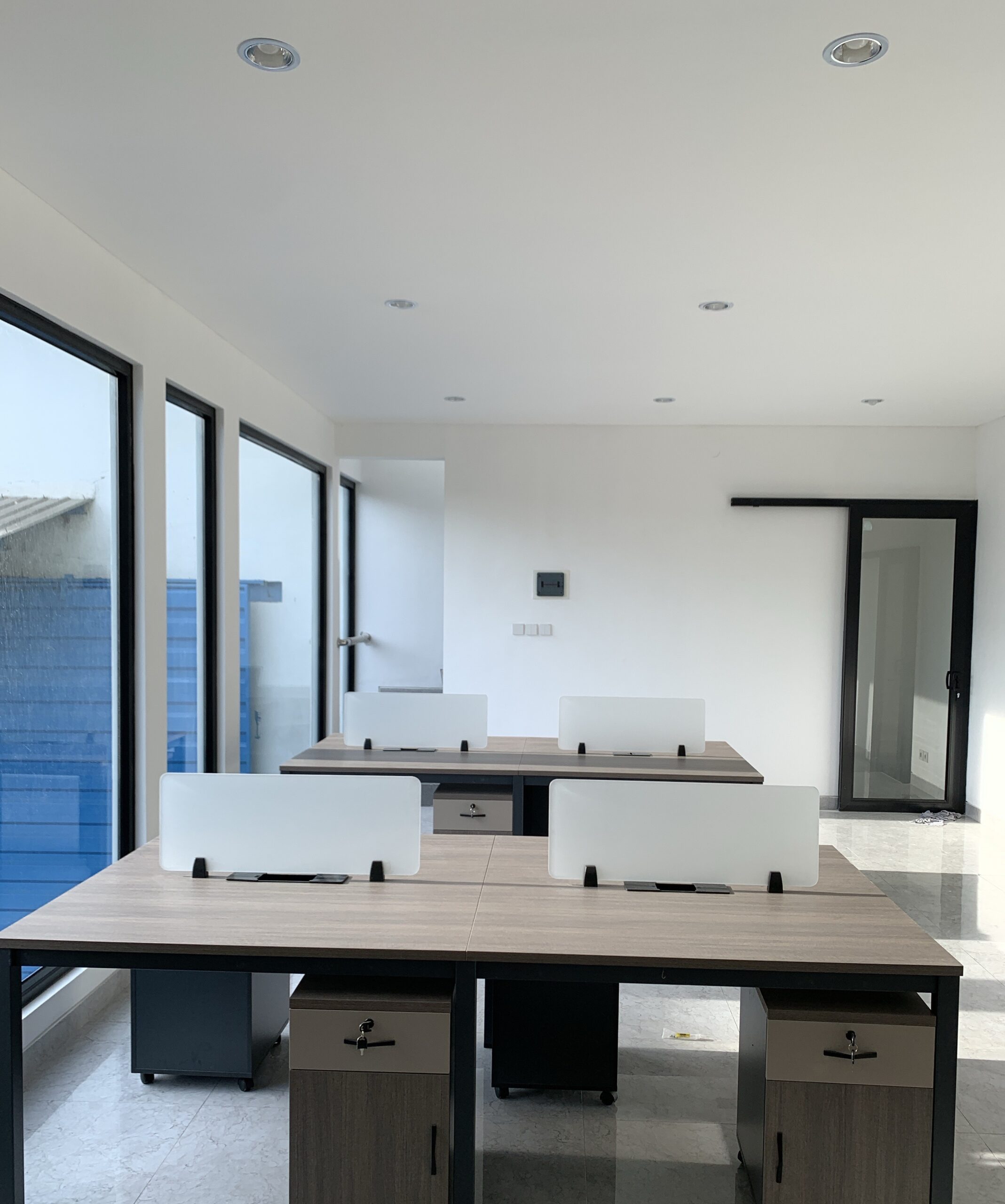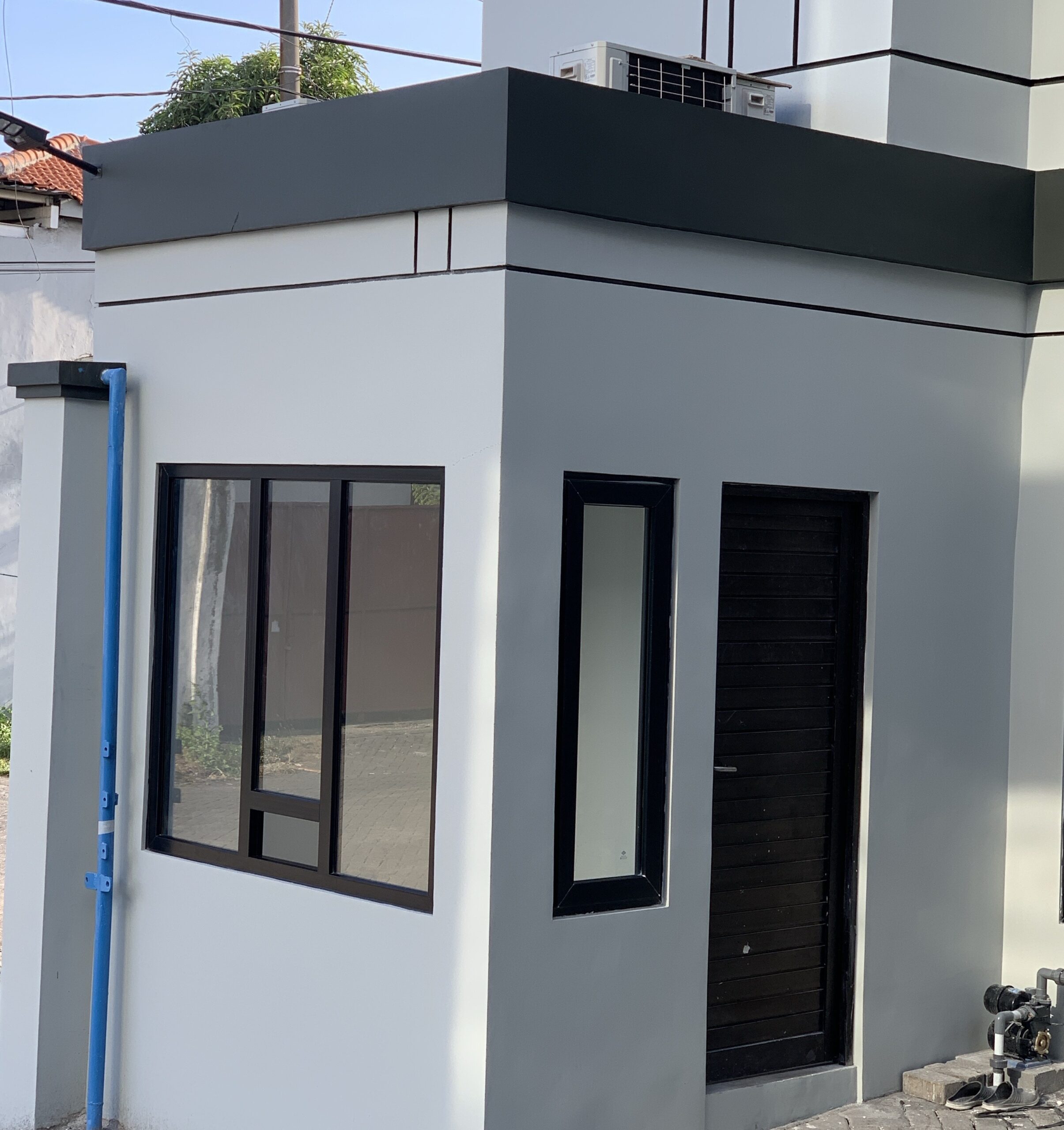 Presenting Margomulyo 44, a contemporary and strategically located building designed for modern commercial or office use in Surabaya, East Java. This striking three-story structure boasts a sleek, minimalist grey facade complemented by large, expansive windows that flood the interiors with natural light, creating a bright and productive environment. With its clean lines and sophisticated aesthetic, Margomulyo 44 offers a prominent presence in the area. The property includes ample paved parking space, ensuring convenience for tenants and visitors alike. Ideal for businesses seeking a professional and accessible location, Margomulyo 44 stands ready to become a dynamic hub for various enterprises in Surabaya’s bustling commercial landscape.
