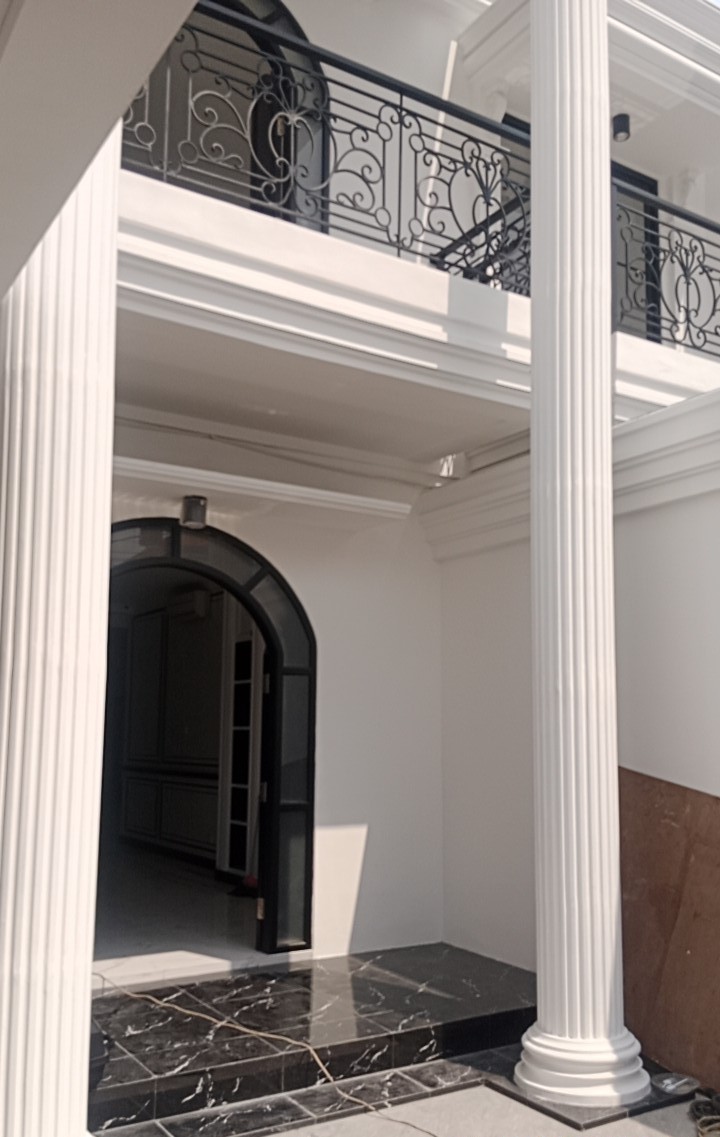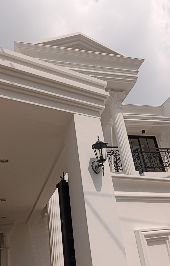 This modern 2-story house construction project is carefully designed to fulfil the needs of both a residence and an office. The combination of stylish and functional design provides a comfortable home and office. The unique floor plan of this house was a challenge for us. The use of high-quality materials ensures long-term durability and comfort. There is a spacious carport with an exterior combination of white walls and wood accents adding to the luxurious impression of the house.